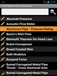 Summary:97 Fluid Mechanics, Civil & Structural Calculators with Formulas and Definitions. Automatic and Accurate Calculation. Professional User-Interface. Complete Engineering Dictionary.