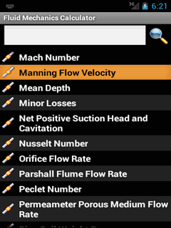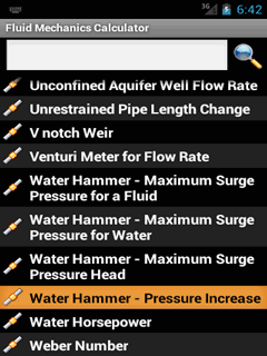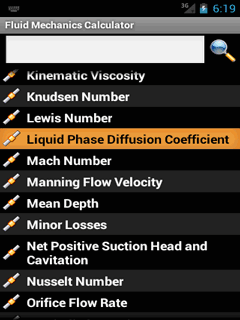 Fluid Mechanics Calculator contains following 97 Calculators: Absolute PressureBrake HorsepowerBernoulli Theorem for Head LossBulk ModulusBuoyant ForceChezy CoefficientChezy VelocityCompressibilityExternal Hydrostatic PressureFlow RateFluid Density with PressureFluid PressureHydraulic RadiusKinematic ViscosityLiquid Phase Diffusion CoefficientPump EfficiencyManning Flow VelocityMean DepthMinor LossesNet Positive Suction Head and CavitationSpecific Gas ConstantSpecific Gravity with Water WeightSpecific Gravity with Water Weight LossSpecific VolumeThrust BlockWater Horsepower